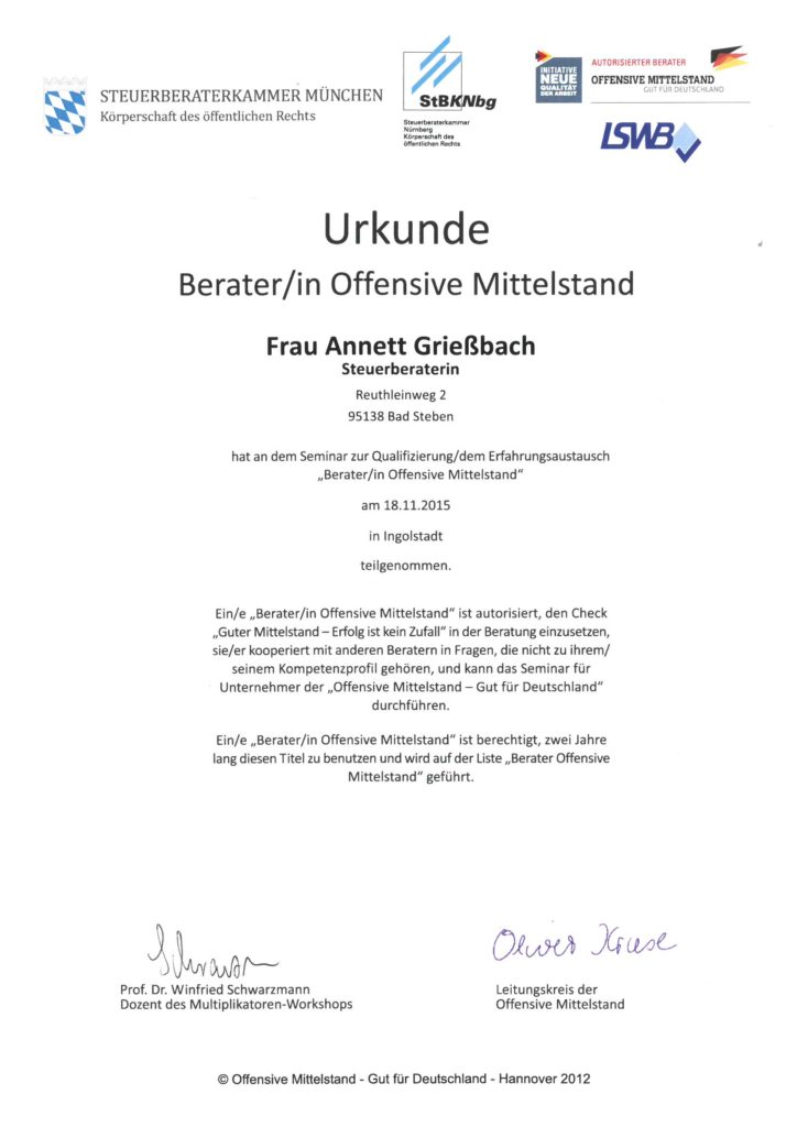 Angaben gemäß § 5 TMG: Annett Grießbach Steuerkanzlei Reuthleinweg 2 95138 Bad Steben Kontakt: Telefon: 0 92 88/97 16-0 Telefax: 0 92 88/97 16-30 E-Mail: info@steuerkanzlei-griessbach.de Steuernummer: 223 222 41 252 Aufsichtsbehörde: Steuerberaterkammer
